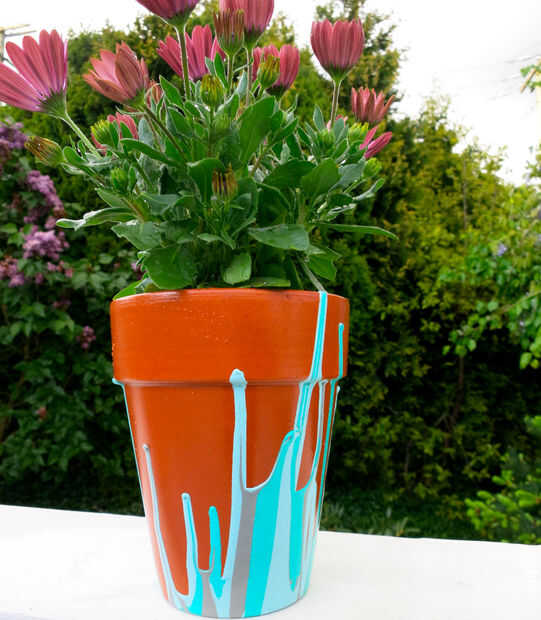 Estos potes de flor de pintura de goteo están fácil y divertido (y un poco sucio) para hacer. Dejó a la do de pintura de cosa, no pinceles necesarios!