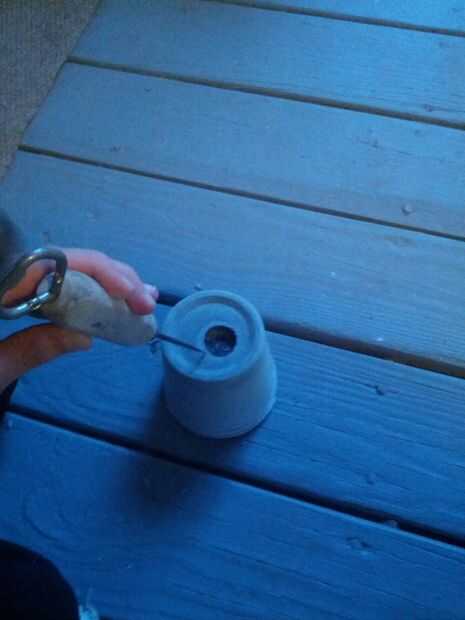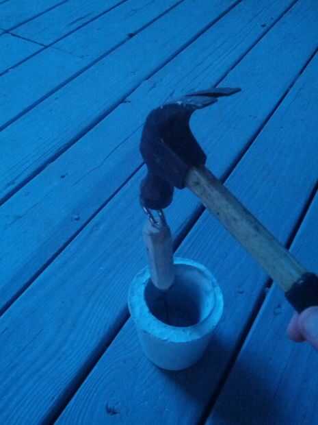 El molde lanzado bastante fácilmente. Cuando el molde es de plástico, sólo puede doblar un poco y poco a poco el elemento vendrá gratis. Usé un picahielos y un martillo para liberar la tapa de soda. Desafortunadamente, algunas grietas desarrollaron durante este paso. De la tiza hasta un poco de caos en mi diseño aunque. Mirarlo, creo que irá bastante bien en un jardín de la maceta rota.