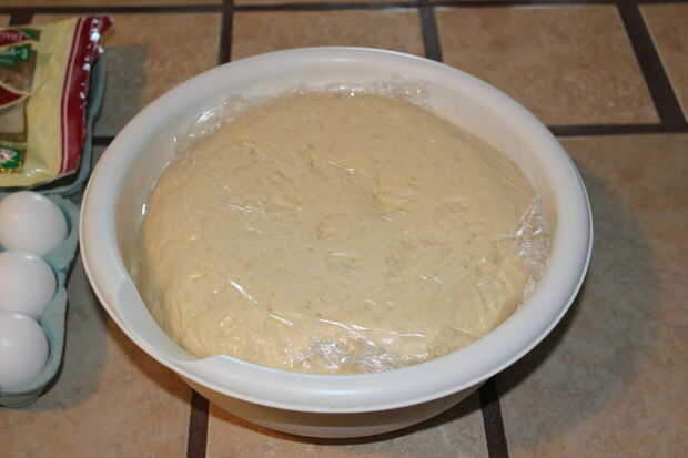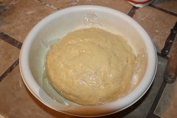Lugar en un tazón aceitado (aceite vegetal), suba lado engrasado. Cubrir bien, deje reposar en el refrigerador durante la noche (por lo menos ocho horas.