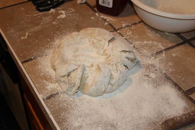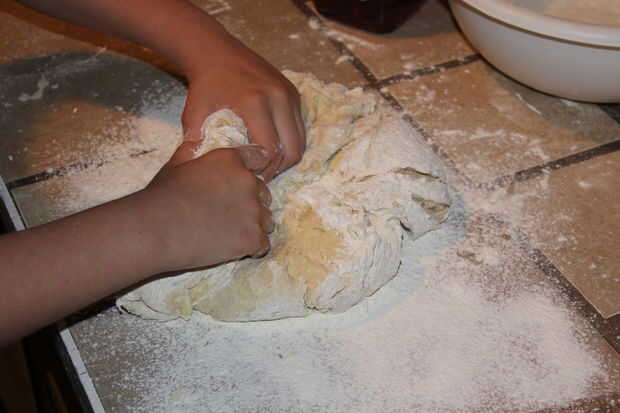 Ponga la masa sobre una superficie ligeramente enharinada; Amase hasta liso y elástico, de 5-10 minutos.