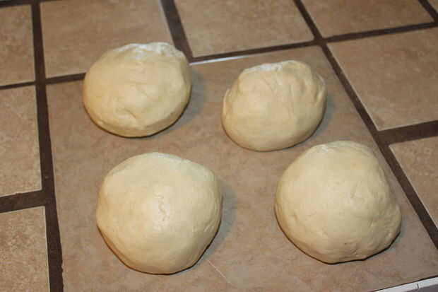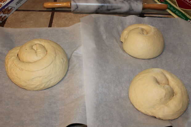 Cubierta; Deje levar en lugar cálido hasta que doble a granel; sobre la 1 y media horas. (La masa está lista cuando la sangría sigue siendo cuando se toca.)