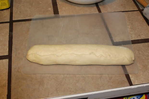 Lugar Poteca costura lateral abajo en papel de pergamino cubierto o ligeramente con mantequilla molde para hornear cuadrado.