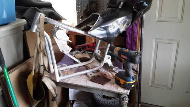 Por lo que se trasladó la vieja placa de montaje a la parte superior del marco para la impulsión del engranaje. Re cumplir el marco y había cambiado la silla de montar. Fue moldeado con una tapa de tanque de gas, por lo que fue quitado y es necesario hacer cuerpo trabajo para rellenar lo que faltaba. Sé que parece pequeño pero tomó alrededor de 16 horas de la fabricación para todas las partes a trabajar juntos