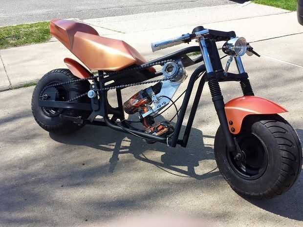 Sí el color cambiado de una mancha a un gloss de tono cobre. Esta moto puede alcanzar alrededor de 35mph en una-en una batería completamente cargada. Será también a su vez pueblos cabezas cuando zip ellos montar a caballo en un taladro. Esta moto puede caber rígido, Makita, Dewalt, Ryobi, etc.. Un taladro con cerca de 1700 a 2000 + rpm es ideal para esta moto en movimiento. En general esta moto es un excelente, divertido de montar y maneja grande.