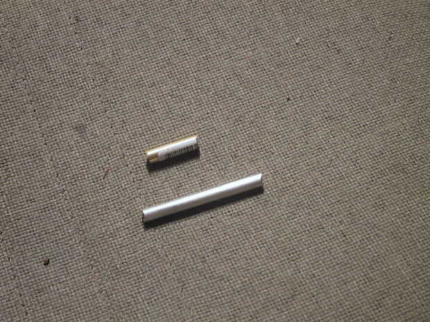 Resma por los extremos de la tubería cortada, así que las diapositivas de la tubería de aluminio limpio dentro del tubo de latón.