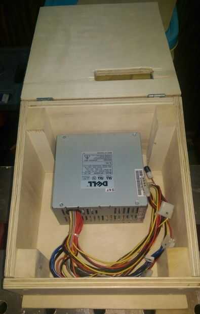 - [taladro, Taladro Brocas, escofina, archivo, papel de lija, Dremel, cinta de pintor] Corte los orificios para el ventilador y cable de alimentación.