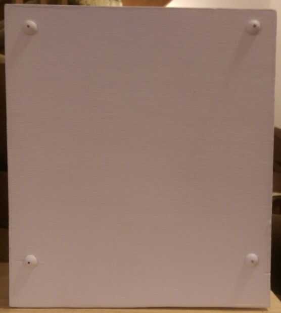 - [pintura látex interior, cepillo de pintura] Pintar el fondo de la vivienda, incluyendo los enchufes de madera redondeados.