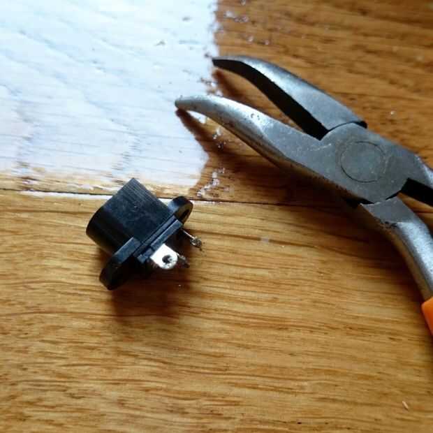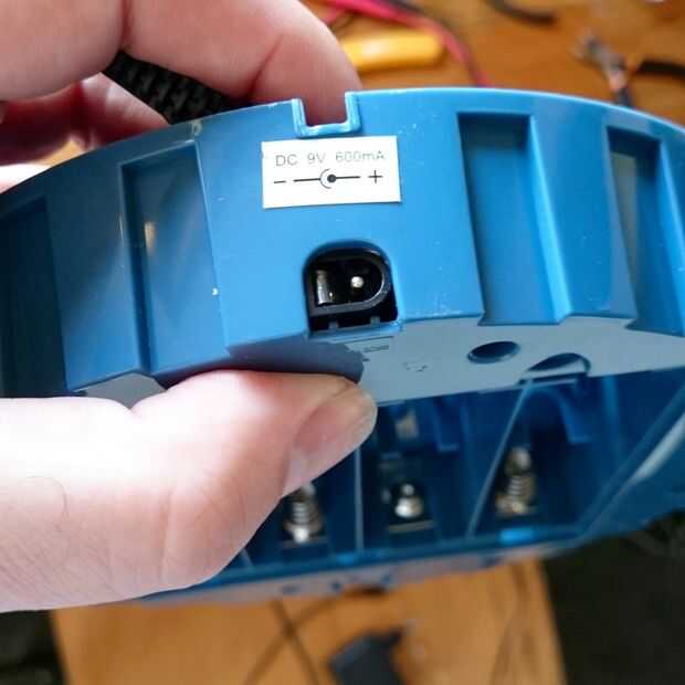 Encontré un viejo juguete roto para salvar de la toma. Tomó algunos pesados para desoldar para obtener la pieza hacia fuera, pero era un ajuste perfecto con mi adaptador de 9V.