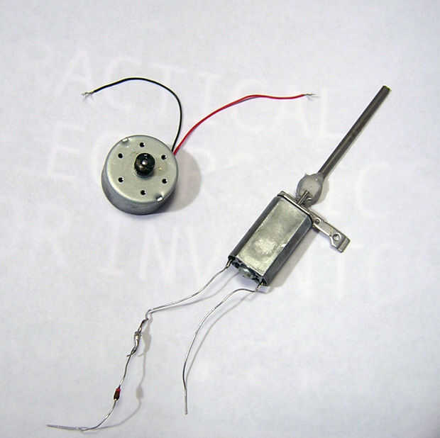 - Motor de la C.C. (He probado sobre 3 o 4 diferentes clases de motores de corriente continua para ello y conseguí ellos todos de viejos reproductores de CD/DVD para no tener que pagar por uno si usted recuperar las piezas aprovechables).
