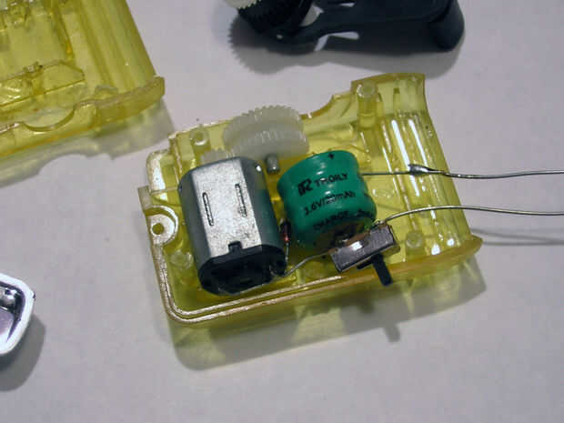 Ahora usted tiene un caso con una manivela, un motor y una batería conectados a través de un diodo. Revisa el esquema en la página siguiente cómo todo encaja.