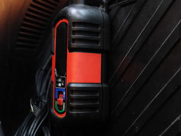 Por último, montar el cargador de batería en algún lugar conveniente, coloque los conectores incluidos en la batería y coloque la potencia del cargador de la cuerda en algún lugar fácilmente accesible para la carga durante la noche.
