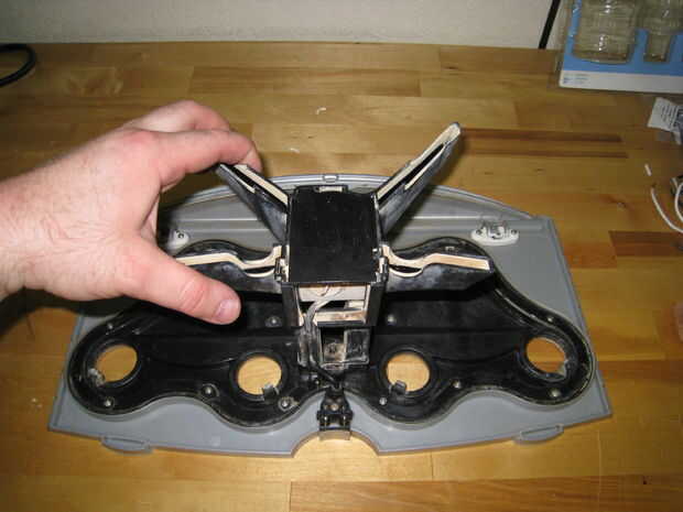 Empezar por retirar la bahía de la vaina de crecer de la tina. Retire el filtro de la bomba, retire el tornillo que sujeta el conector eléctrico de la bomba a la caja. Pellizcar las dos piernas juntos ligeramente al levantar la pieza de plástico negro en la parte inferior hasta que sale. Empuje hacia arriba de la bomba para eliminar de la base. Hay un tornillo que sostiene la base en oculto por la bomba, quitar este tornillo y separar las dos piezas de la base. Ya no se utilizará la pieza inferior.