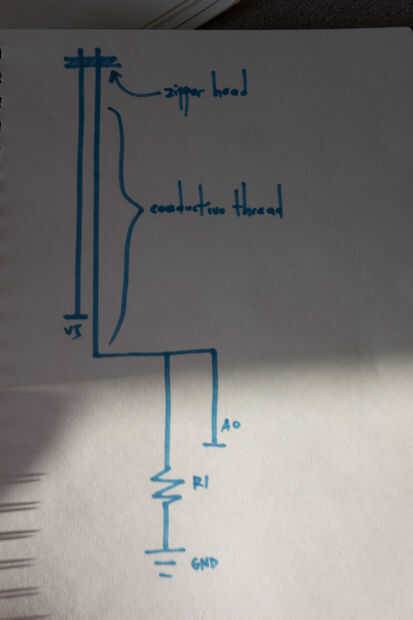 El hilo conductor de cremallera de metal cabeza puentes los dos carriles aumentando y disminuyendo la resistencia del sistema.