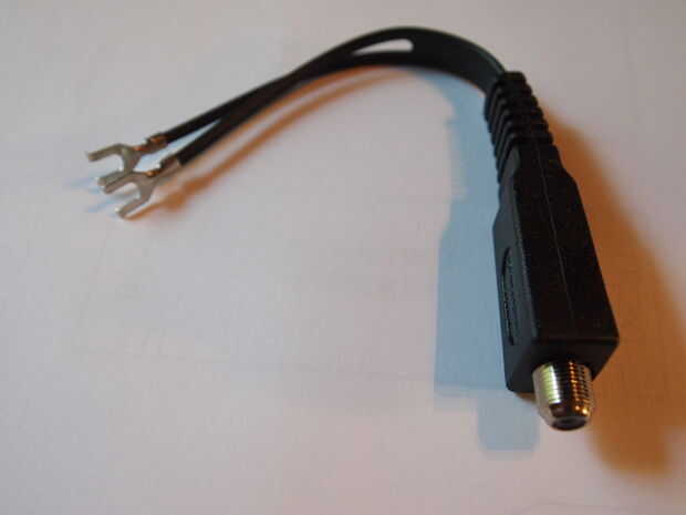 - 75 a 300 Ohm UHF/VHF emparejar transformador (sobre en línea $5 o $6 en Radio Shack) - aquí es popular en Amazon: 75 a 300 Ohm UHF/VHF emparejar transformador