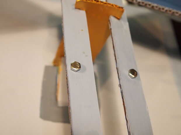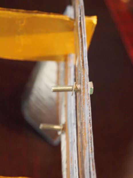 Por último, el cableado es realmente muy simple. En la pieza de patrón verás que hay un círculo en el patrón para demostrar el centro de la pieza larga de cartón que va a lo largo de la antena. El círculo es aproximadamente 1/8 a 1/4 de pulgada en el lado. Utilice su patrón para marcar ese punto en sus dos piezas principales alados. A continuación, utilice un taladro para hacer dos agujeros a través de esos puntos. Los tornillos se deben poner a través de los agujeros. Entonces, saca el transformador que tiene el cable coaxial del enchufe por un lado y doble plomo en el otro. Tomar los dos alambres de plomo - Coloque las arandelas en la parte posterior de donde fueron puestos los tornillos a través de la cartulina, luego conectar uno de los cables del transformador y apretar con un tornillo. Lo mismo para el otro lado con el tornillo. ¡ Ahora tendrás el transformador colgante- y listo para ser enchufado!