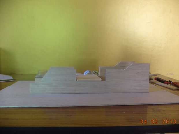 Este paso es muy sencillo. Necesita cortar la balsa para hacer la base que se fija con espuma después. No he mencionado ningún dimensiones específicas para el corte. La longitud de mi arte era alrededor 650 milímetros. Usé una sierra para cortar la balsa. También se puede utilizar una cuchilla quirúrgica. Tenga cuidado al cortar la balsa ya que es muy suave.