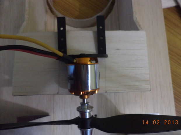 Este paso es muy sencillo si tienes los soportes del motor necesarios contigo. Generalmente cuando usted compra sin cepillo motor una montura viene con él. Usé ese montaje para el motor de sustentación. Para el motor de propulsión usé un diseño diferente. Lo compré en una tienda online de RC. Parece que fue hecho con algún tipo de cerámica y era muy ligero y fuerte. Por favor, lea las notas sobre las imágenes para más detalles.
