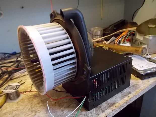 Ahora que termines cableado todo es finalmente hora de pegar la caja ventilador del soplador. He utilizado pegamento caliente para hacer esto, estoy seguro de que hay algunas alternativas mejor pero eso es lo que usé. Asegúrese de que el ventilador gira libremente y no roce contra la cubierta. Una vez que el caso del ventilador está pegado al ventilador puede pegar la tapa del caso en su lugar y todo lo que queda por hacer es agregar el aire de escape!