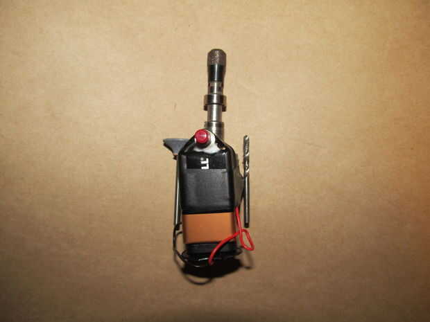 -Utilice una pequeña cantidad de pegamento para sujetar el interruptor a la batería y la cinta alrededor de ella
