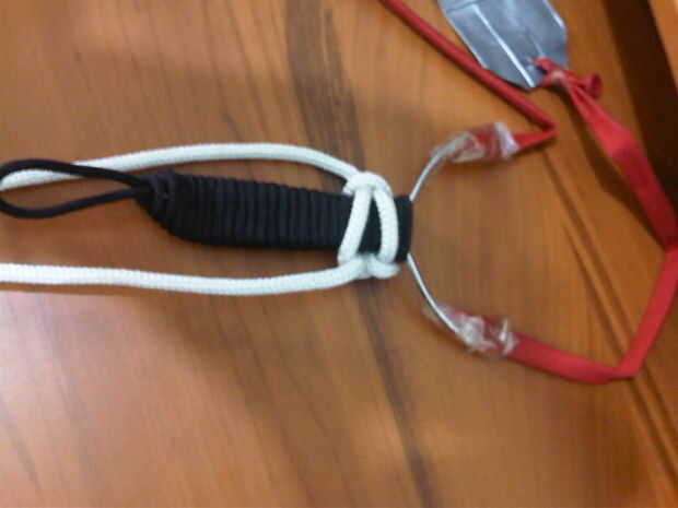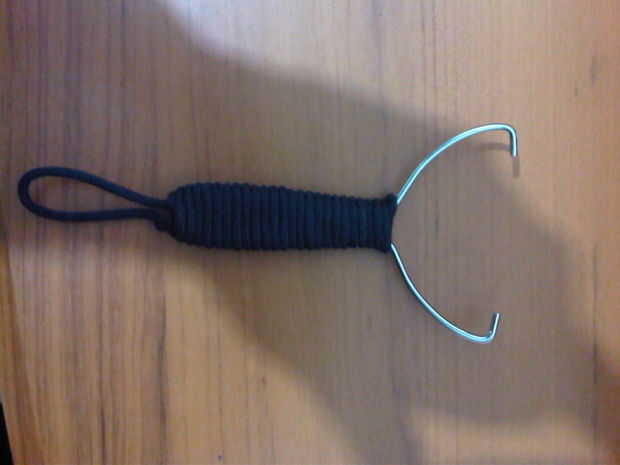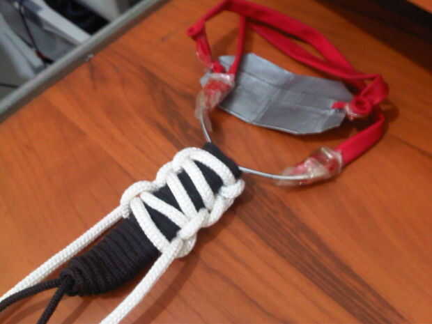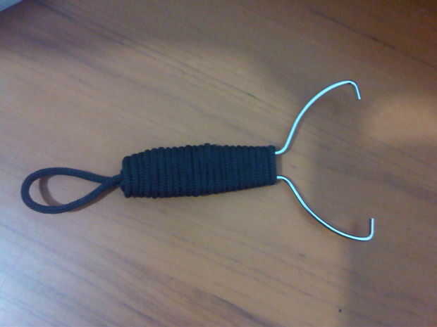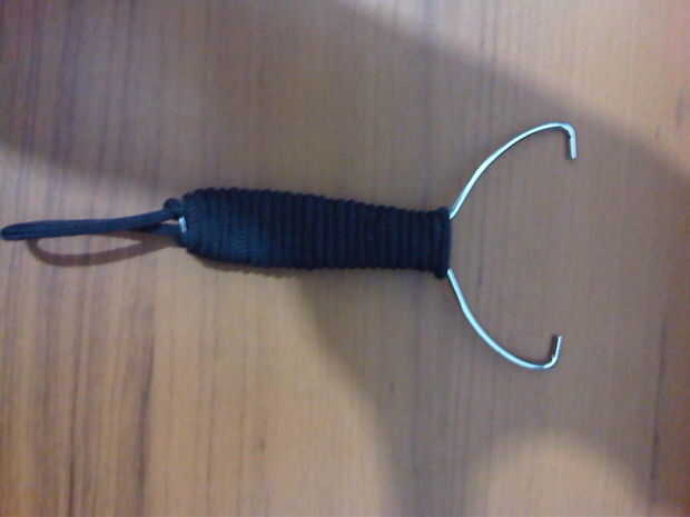 envolver la parte metálica con el paracord como se muestra en las imágenes y grabar el final, si es necesario o simplemente empujarlo dentro.
