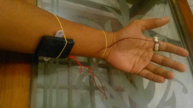 Desgaste con la ayuda de bandas de goma y poner abajo sus mangas para ocultar los cables y batería