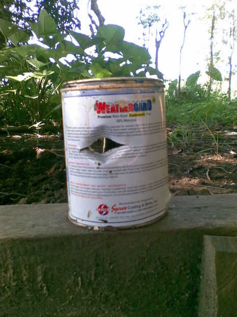 Cómo utilizar: Con todos los materiales reunidos para formar un rifle disparar es tan sencillo como comer maní. Sólo Abra la tapa de la botella, rociar alcohol desnaturalizado de 3 a 4 veces dentro (dependiendo del tamaño de la botella), volver a tapar, poner el mármol dentro del tubo de PVC y fuego. El resultado es una explosión muy potente que le enviará el mármol vigorosamente volando rápidamente hacia cualquiera de tu objetivo. Aún no puede ver que el mármol voló camino desde el extremo del tubo de PVC. Esta carabina puede penetrar 1/8 pulgadas de chapa metálica y puede alcanzar hasta 600 yardas dependiendo de tamaño del mármol si sólo cabe derecho en su Tacho PVC, mármoles más pequeño pueden viajar menos y la longitud de la PVC. Este rifle es preciso incluso en 50-60 yardas. Estoy usando este rifle para caza de aves y hasta ahora estoy bastante satisfecho. También estoy en el proceso de refinación de esta carabina para producir más energía y hasta ahora tengo 3 con diferentes diseños y longitudes. Caso que te interesa de mi diseño yo soy muy abierto para compartir. Lo importante es cuando tienes uno, toman toda la responsabilidad.