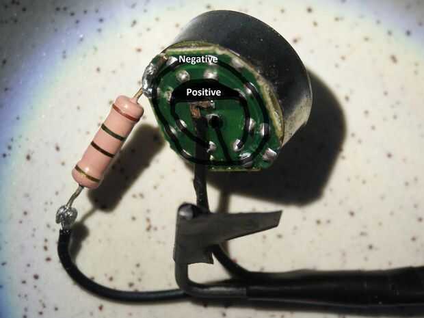 Si nos fijamos en el LED, se pueden ver una grande y una pequeña placa de metal hacia las piernas; el grande es el negativo y el pequeño es el positivo.
