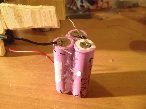 he utilizado pegamento caliente para armar 3 células. Se conviene una célula en la dirección opuesta. Cable de las células en serie. Asegúrese de que hay alambre extra en cada conexión para carga y balanceo.