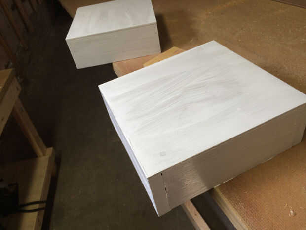 Utilizar masilla de madera se puede pintar para rellenar todos los agujeros de clavo y tornillo. Que seco, luego arena.