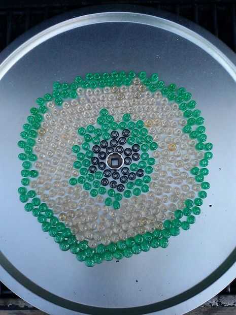 Diviértete arreglando cuentas para ver como las flores. Coloqué el zócalo de 1/2 pulgada en el centro de la flor. La toma fue la misma medida del tallo en la luz solar. Si la toma es ligeramente más pequeña que la madre, use el tamaño siguiente para arriba. De lo contrario, deberá presentar para hacerla un poco más grande para que quepa en la luz solar. En dos de las flores no agrego la toma. Estos los que hice para flotar en un estanque o piscina, por lo que no quiere ningún agujero.