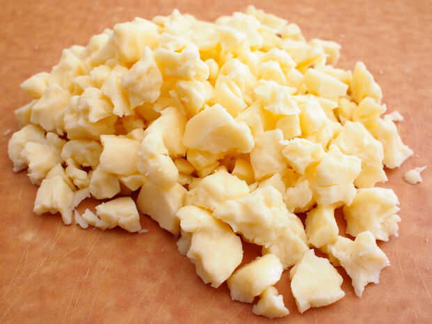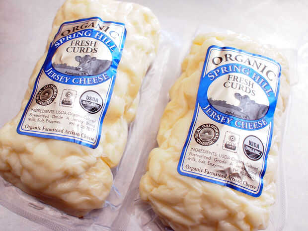 Cuajadas de queso son los sólidos grasos de leche cuajada. Este queso curado no es abundante en Quebec, y lugares como el nordeste y el medio oeste de América. Tuve un momento difícil encontrarlo en el área de la bahía de San Francisco, finalmente viajar a un mercado de campesinos y compra el proveedor local fuera de su stock.