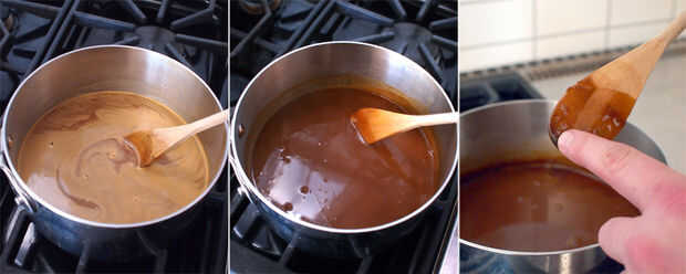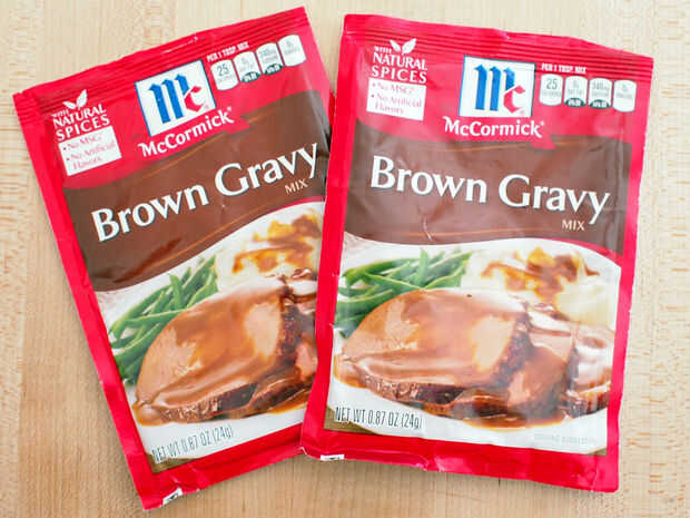 Por las indicaciones en el envase, en una cacerola pequeña me combina 1 taza de agua fría 1 paquete de mezcla de salsa y batido juntos. Luego, a fuego medio, la mezcla se agita hasta que vino a ebullición. Después, retirar del fuego y dejar reposar unos minutos espesar.