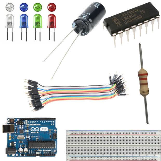· 24 LEDs (en este caso usaremos 8 rojos, 8 blancos y 8 verdes, para poder diferenciar mejor el dibujo de cada renglón)
