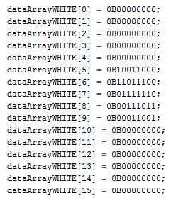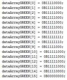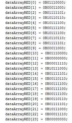 Como podemos observar en los códigos, transcribimos cada uno de los dibujos del paso anterior a un arreglo dentro del código. Posteriormente, cada arreglo será dentro llamado del ciclo del código, para que sean dibujados repetidamente.