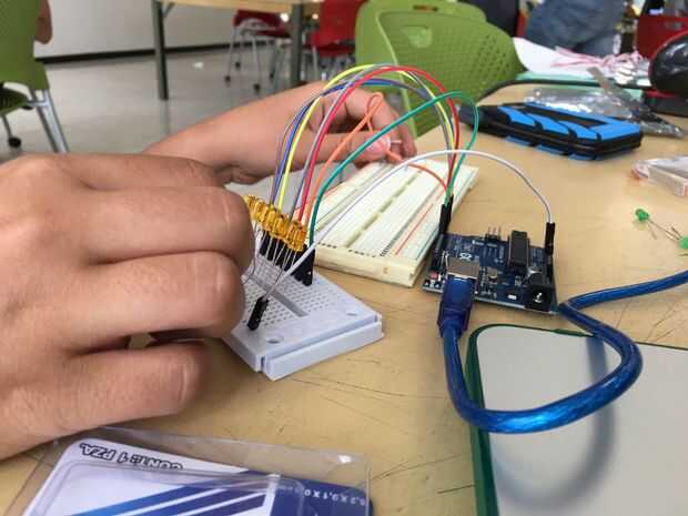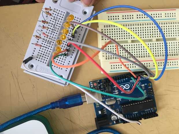 • Arduino uno Cables de cobre (número de LEDs a usar + el cable de tierra. En nuestro caso 8)