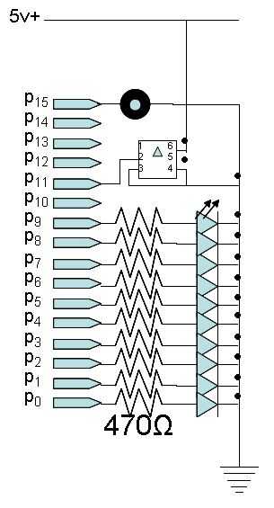 ¿matriz de visualización de LED de 5 x 4 usando un Basic Stamp 2 (bs2) y Charlieplexing