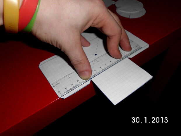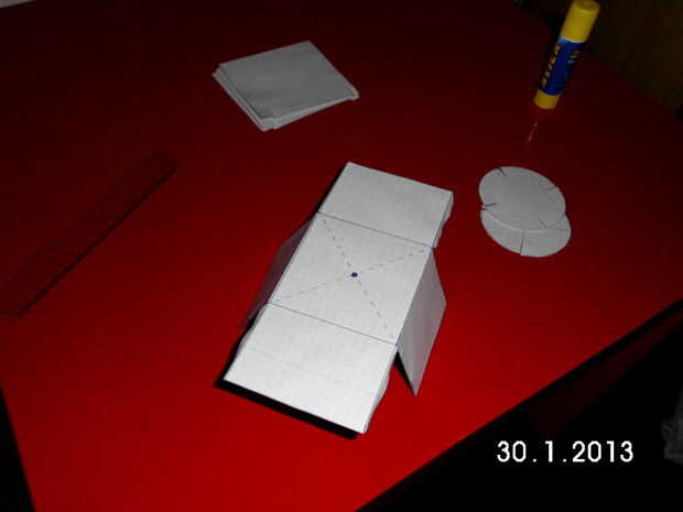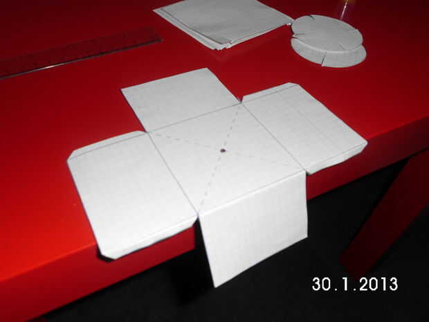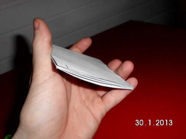 Ahora empezar a doblar la base en la línea dibujada. Después de doblar, se puede quitar la cartulina de forma de papel