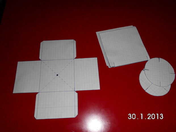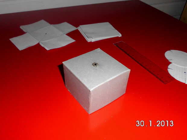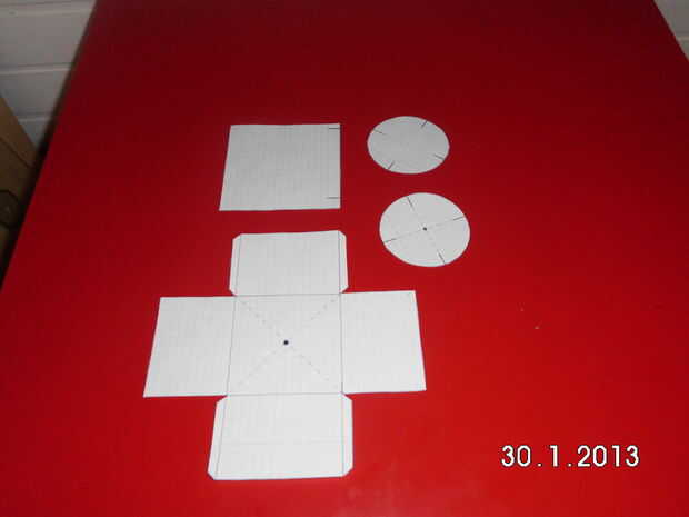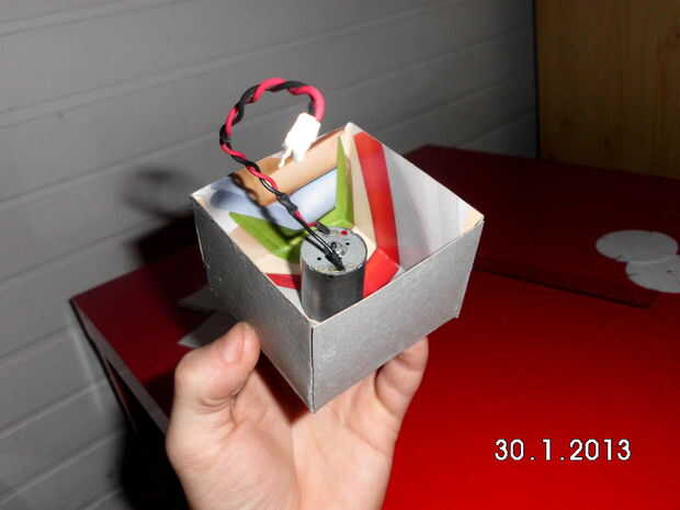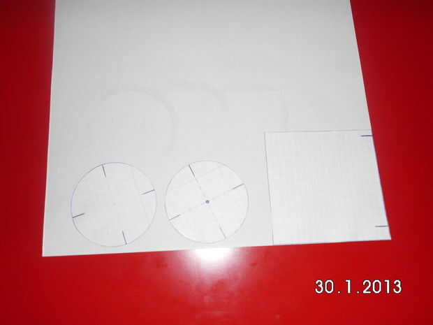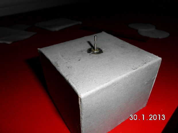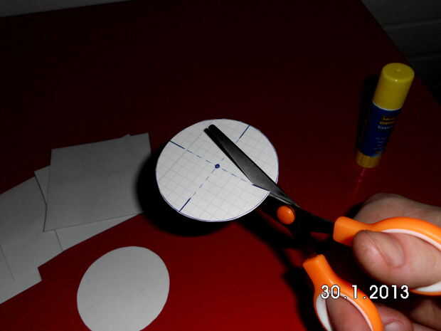 Corte las ranuras de 1cm en los pedazos de cartón y perfore el agujero central, grande como sea necesario para encajar el eje del motor a través de.