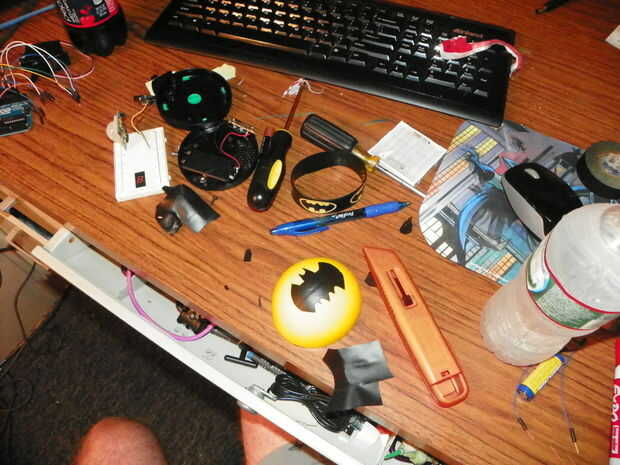Ahora tienes pega de leds al frente, el interruptor atornillado a la parte superior y 2 cables saliendo de la parte inferior. Coge una pila y probar su conexión.