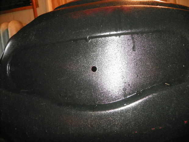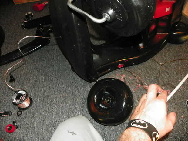 Perforar un directectly todo en la parte delantera del coche. No tiene que ser grande sólo grande suficiente para ejecutar los cables a través.