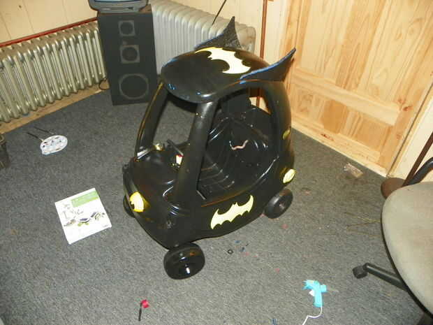 construir una réplica del tambor de batman para el internacional cartoonfestival en Bélgica. nuestro vaso es construir en madera (douglas para el chasis, multiplex y betonplex para la carrocería). No tiene motor o no en coche, pero los niños realment