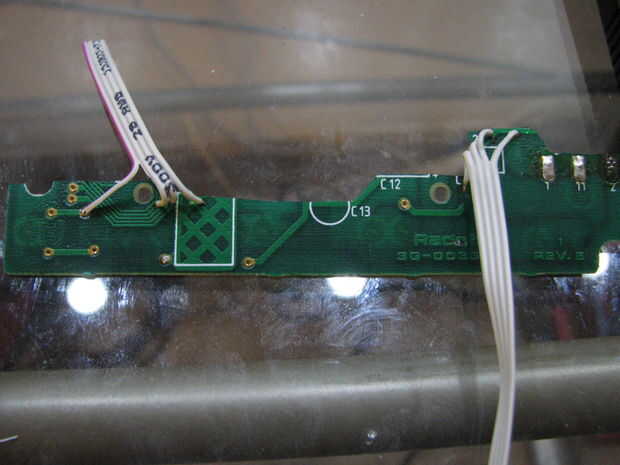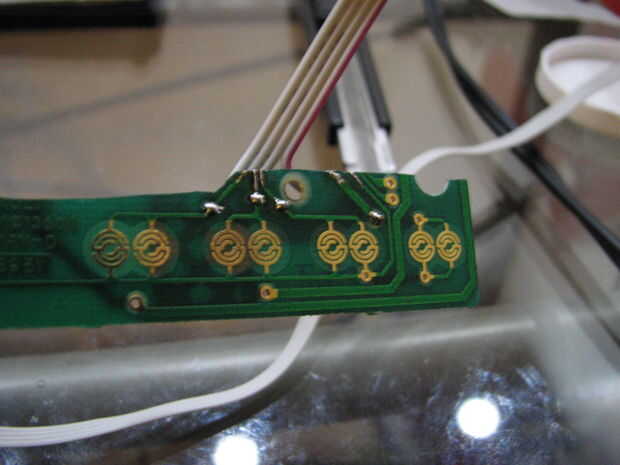 Identificar cada uno de los rastros relevantes en el tablero. Hay un terreno común y uno para arriba, abajo, izquierda, derecha, B, A, Start y Select--total 9 rastros. Para cada rastro, utilizar la Dremel para perforar un pequeño agujero al lado del rastro, cerca del borde del tablero. Idealmente los agujeros sólo deben tocar el borde de cada huella. Utilice una cuchilla para grabar algunos de capa protectora de cada rastro cerca de los agujeros, exponer la traza de cobre. Por último, inserte un cable por cada agujero y soldadura a la traza expuesta.