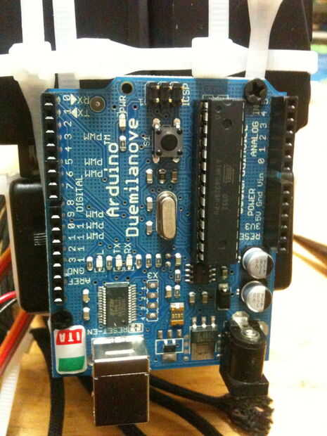 Por último, puede fijarse la placa Arduino. Agujeros con zip lazos en ambos lados y se sujeta por tornillos Unidos a ellos.
