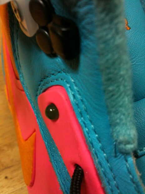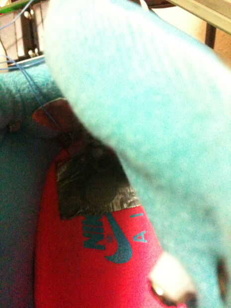 Los cables, también pegados y con cinta en su lugar, suban por la parte trasera del zapato y el Arduino.
