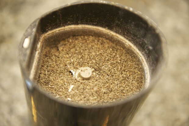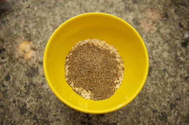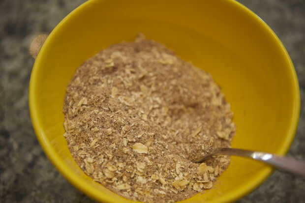 Si no son terreno con sus semillas de chia, molerlos para 10-15 segundos en el mismo molino hasta polvo. Usando semillas enteras es demasiado fino, sólo se digieren más lentamente y la avena no es del mismo grosor.