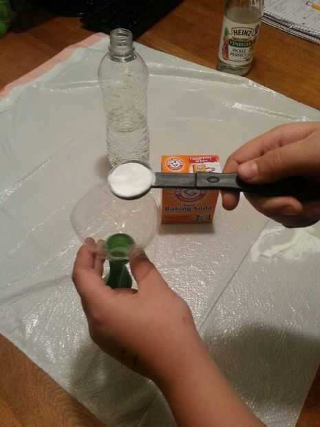 Agregar 2 cucharadas de bicarbonato de sodio en el globo.
