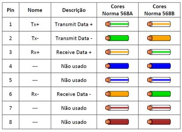 Para 10 y 100 Mbps de la red tenemos la tabla anterior de la configuración de los pares.