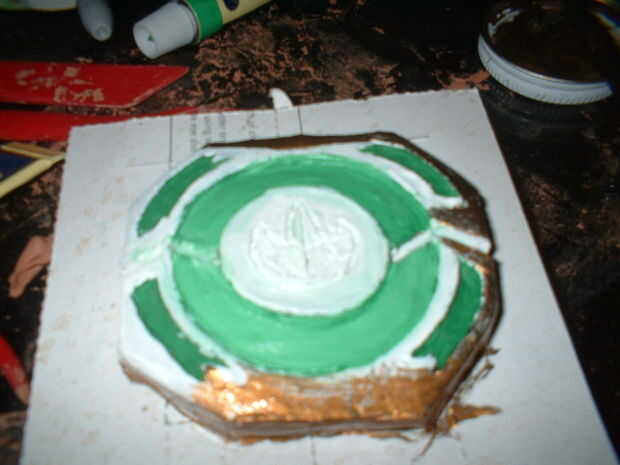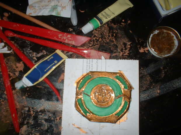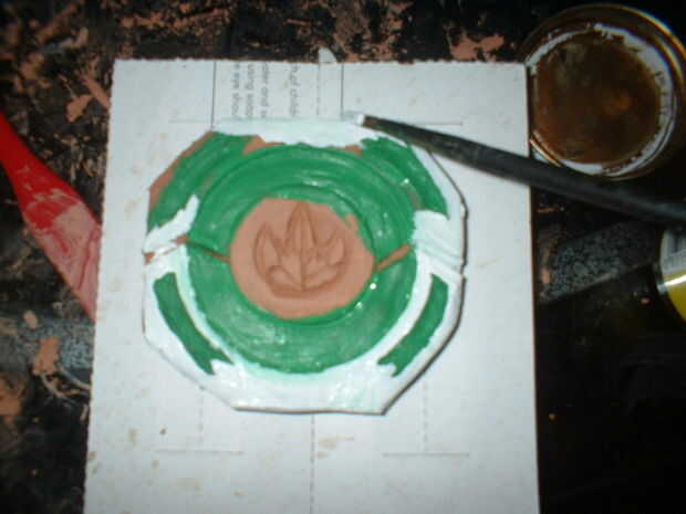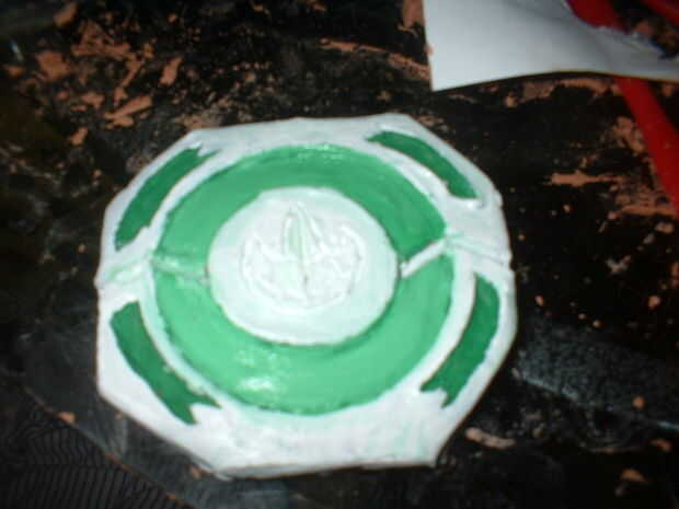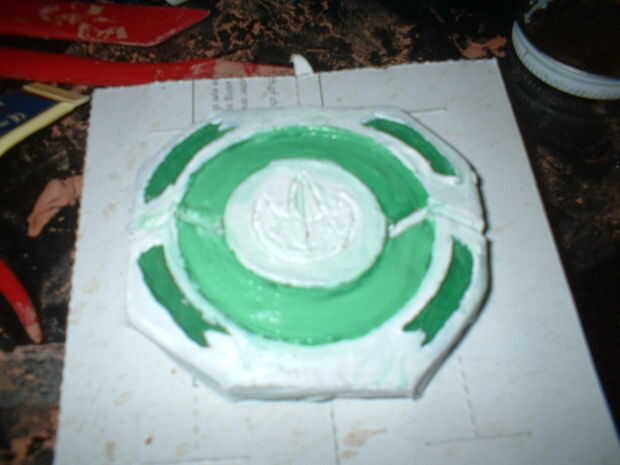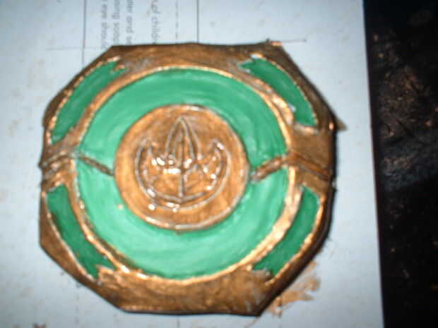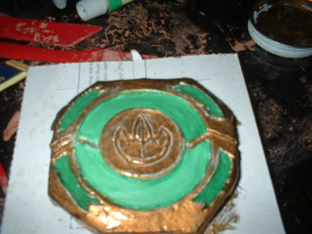 Sólo conseguí aburrido y decidió crear a un morpher en el estilo de un ranger de geen de película. tardó unos 20 minutos para esculpir y sobre un día que se seque, luego de 20 minutos para pintar la capa verde y blanco, luego el esmalte oro plasticoat tomó 10 minutos, fácil!!!!!!