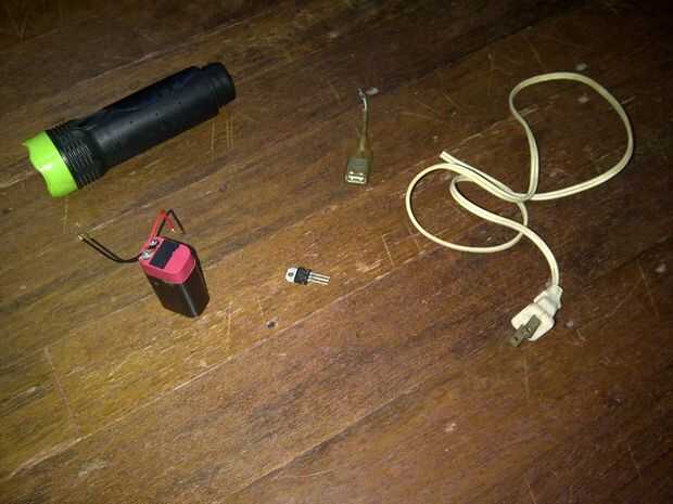 Los materiales necesarios son: -vieja linterna recargable -5v regulator(7805) conector - usb (hembra) -con un enchufe (de aparatos de chatarras) (opcional) -otra batería (de linterna recargable vieja también)