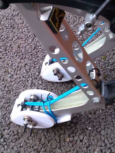 Gota en una pisada al poweriser - poner un bungee desde el agujero delantero de orificio inferior cerca del tobillo de la unidad - ver piks.